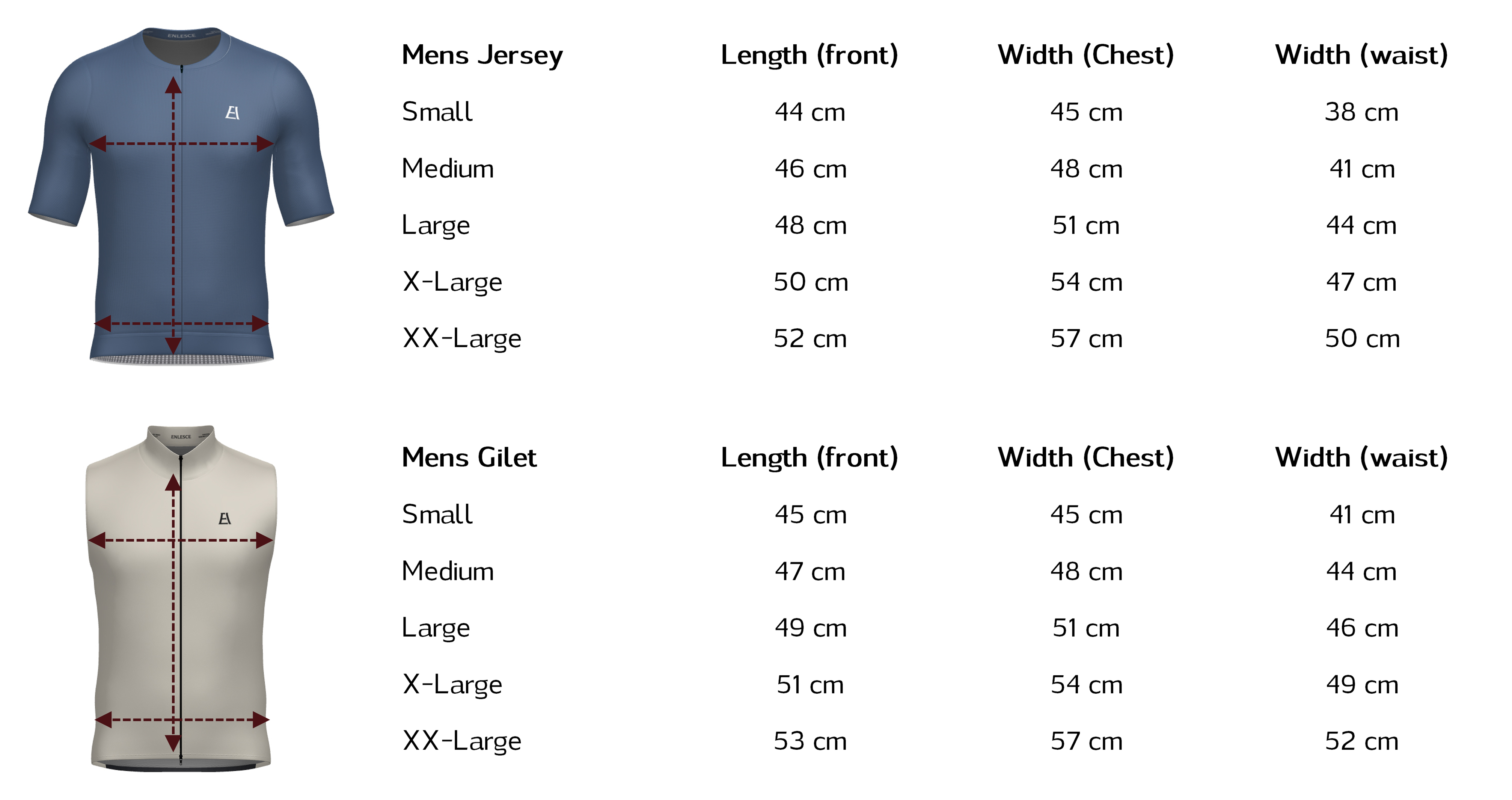 Gilet: True to size. Go with your jersey size. The torso runs slightly shorter, so you can size up if you prefer a more relaxed fit.